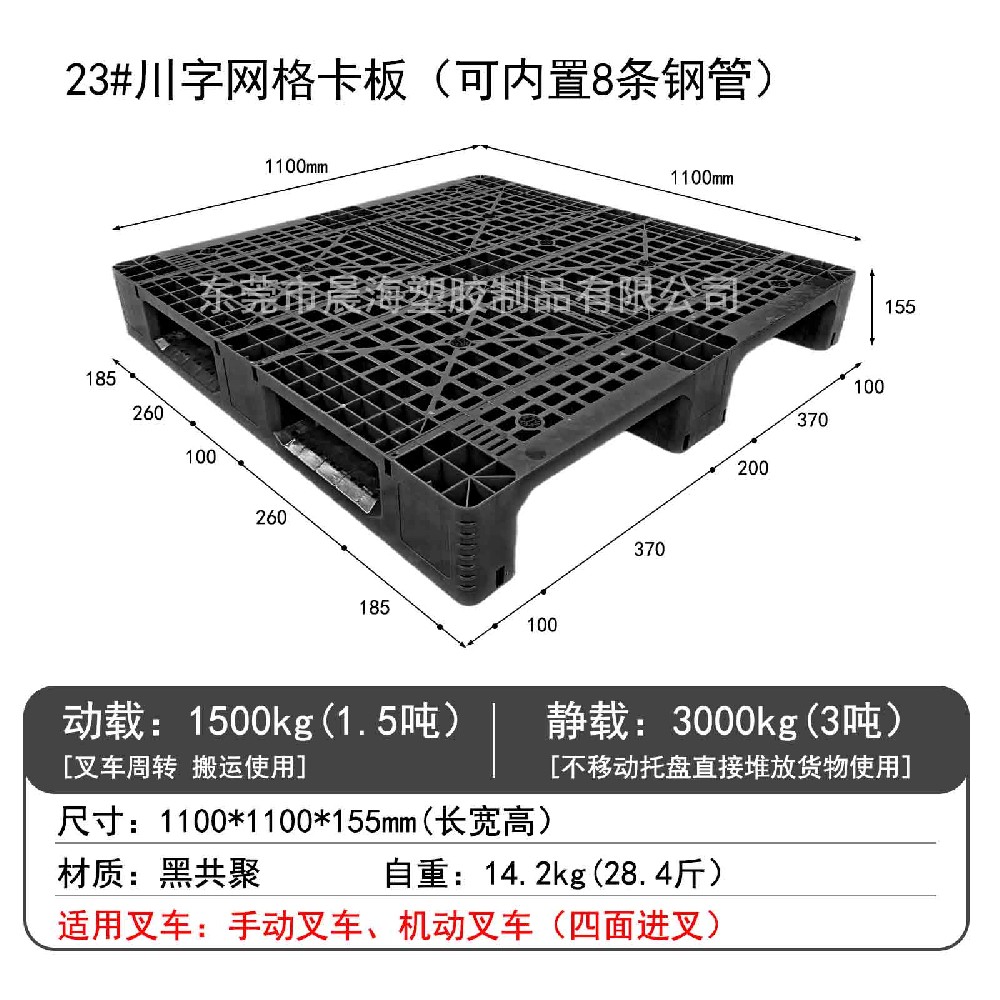 23#川字網(wǎng)格卡板(可內(nèi)置8條鋼管)_塑膠卡板